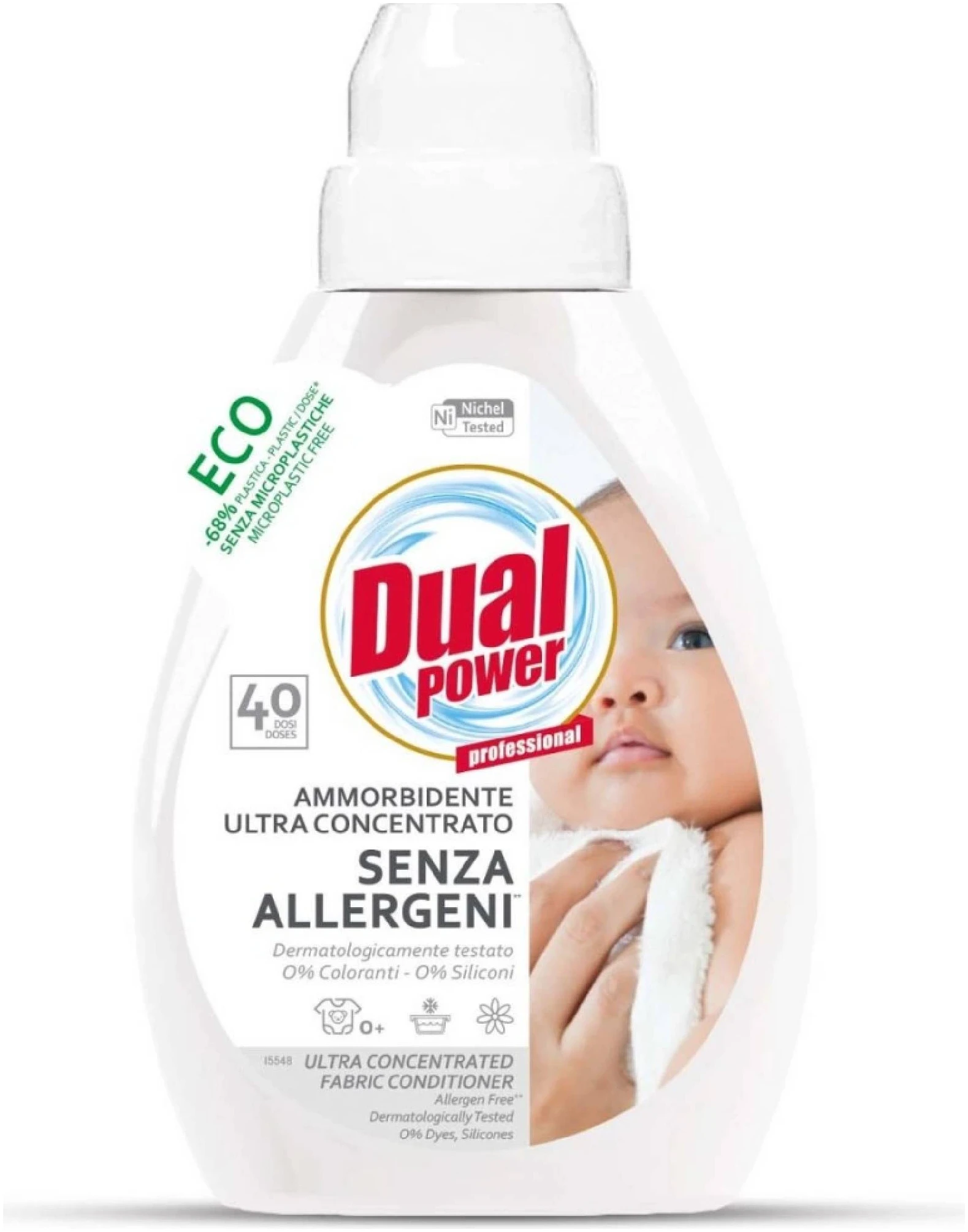 DUAL POWER ultra koncentrovaná aviváž bez alergénov s jemnou vôňou s prírodnými extraktmi z aloe a nechtíka lekárskeho je ideálna pre veľmi citlivú pokožku a detské prádlo vhodné od veku 0+. Zloženie bez parabénov, silikónov a farbív, dermatologicky testované. Koncentrované zloženie obsahuje o 77% menej vody.