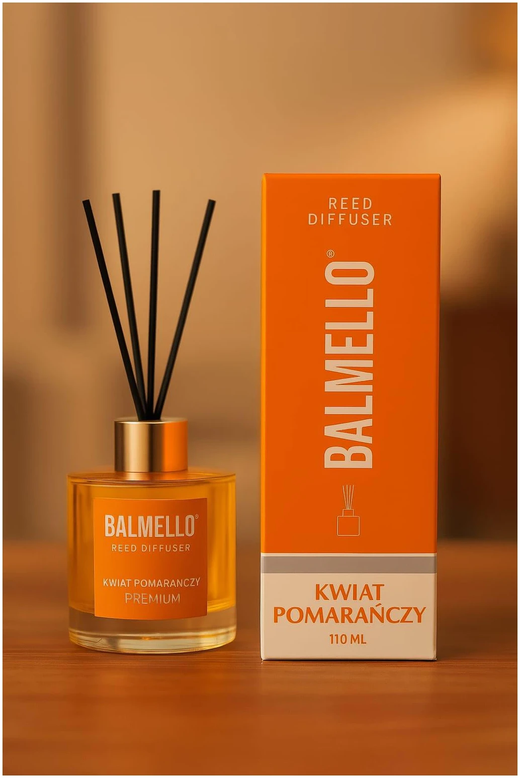 Predstavujeme vám bytovú vôňu ORANGE BLOSSOM – 110 ML, perfektný spôsob, ako vniesť do vášho domova lahodnú vôňu pomarančového kvetu. Táto bytová vôňa sa dodáva s tyčinkami, ktoré ľahko naplnia každú miestnosť osviežujúcou arómou pomarančových kvetov. Objem 110 ml zaisťuje dlhotrvajúce používanie, takže si môžete osviežujúcu vôňu užívať dlho. Jednoducho vložte tyčinky do fľaštičky a nechajte prírodnú vôňu naplniť váš obytný priestor a vytvoriť tak príjemnú a povznášajúcu atmosféru. Vneste esenciu pomarančového kvetu do svojho domova s bytovou vôňou BALMELLO.
